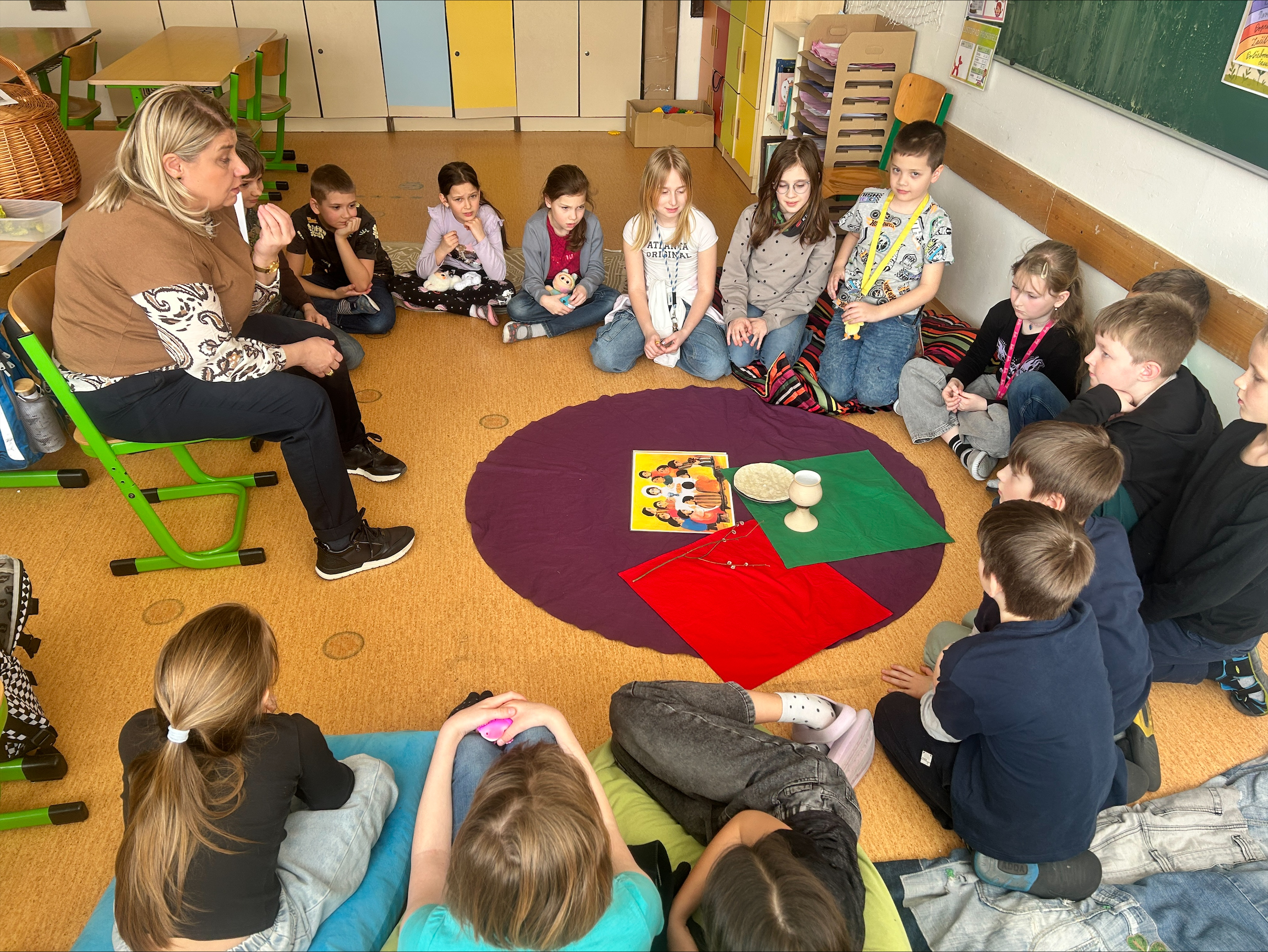 Pár dní před Velikonocemi se žáci 3. ročníků zúčastnili zajímavého programu s názvem Poselství křesťanských Velikonoc. Hodina byla připravena tak, aby dětem přiblížila Velikonoce nejen jako svátky jara, ale také jako důležitou součást křesťanské tradice.