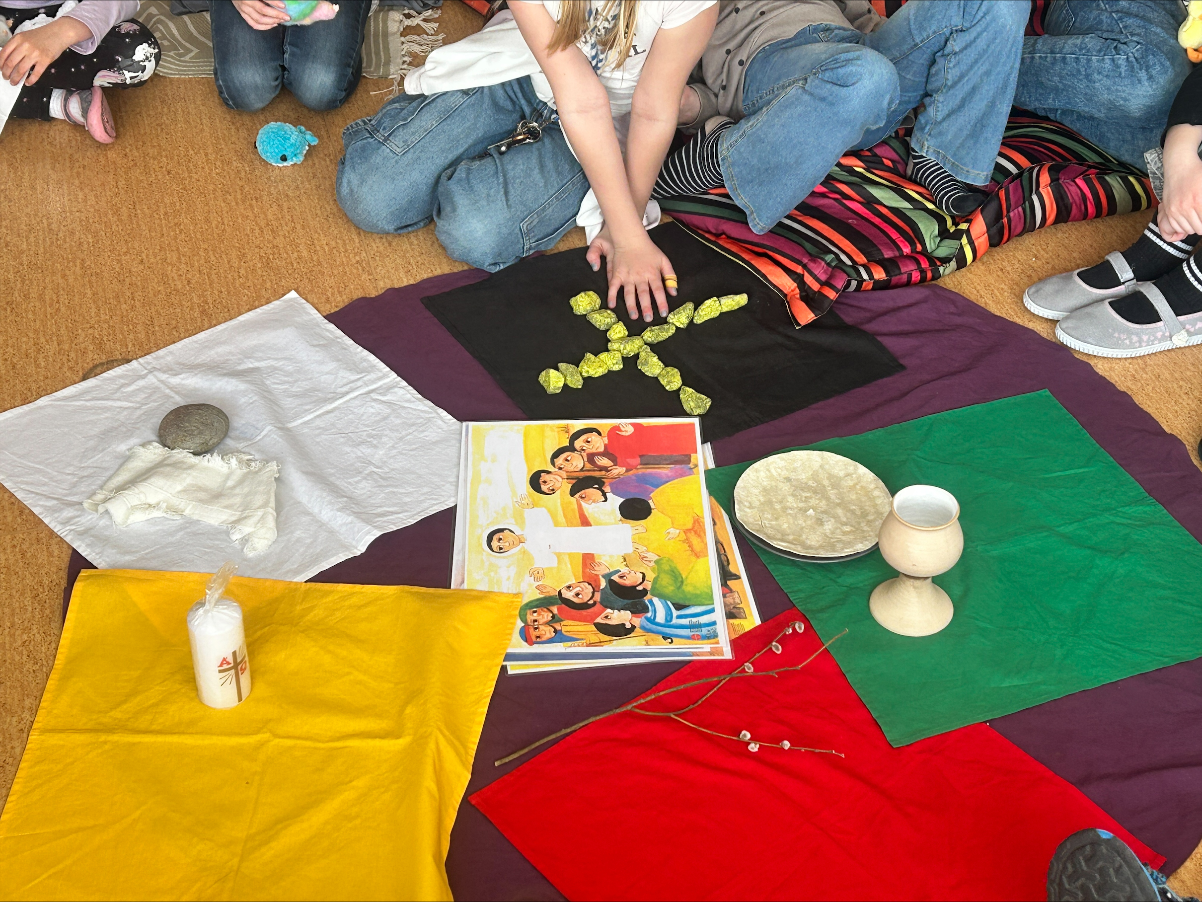 Nejprve si děti povídaly o barvách, kterými vyjadřují své pocity. Poté si vyslechly vyprávění o „velké noci“, tedy biblickém příběhu o smrti a zmrtvýchvstání Ježíše z Nazareta. V další části se zamýšlely nad tím, jak se může bolest proměnit v radost, a přemýšlely také o tom, co pro ně znamenají vzpomínky na blízké, kteří už nejsou mezi námi.