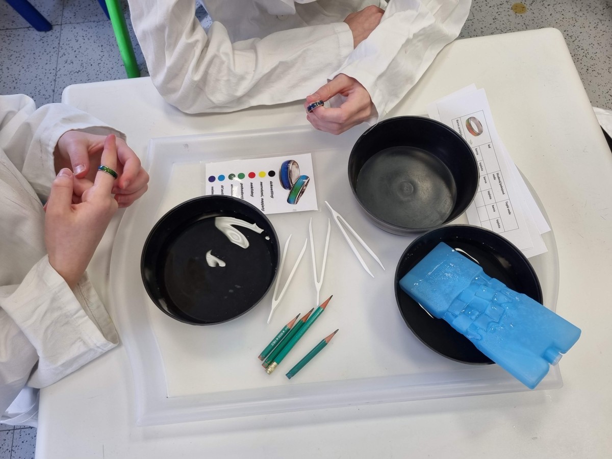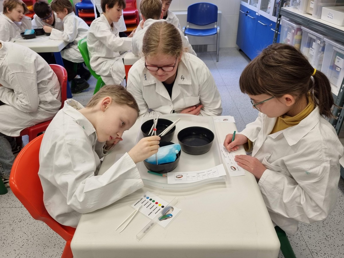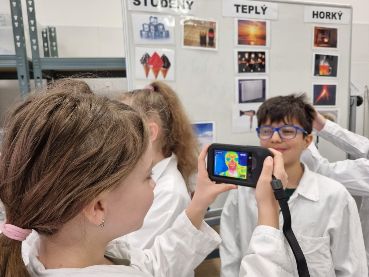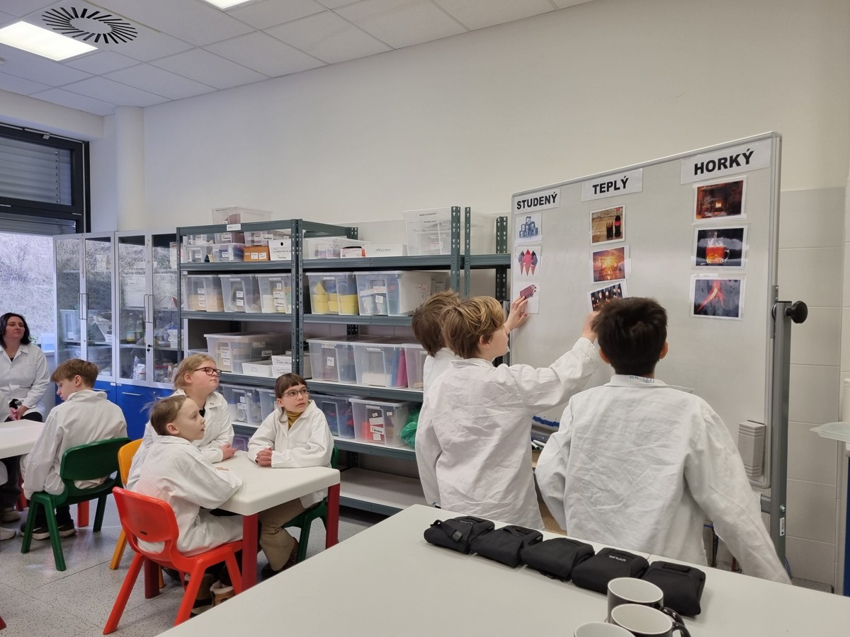 A svoji vědeckou práci nám v laboratořích Bioskop Masarykovy univerzity hravou formou přiblížili zkušení lektoři. V programu, který se věnoval tématu protikladů, si žáci vyzkoušeli odlít předmět ze sádry, měřit teplotu vody, pracovat s UV lampami či termo kamerami. Odlitky i obrázky na bázi modrotisku jim pak byly upomínkou na tento program.