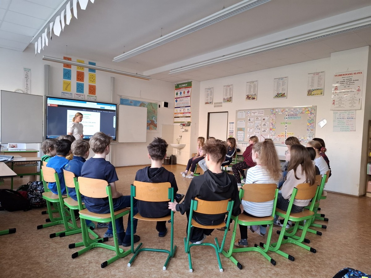 Taktéž paní Muzikářová, matka našeho žáka, velmi zajímavě zpravila děti o své práci v jedné z největších pojišťoven v ČR, o různých datech a faktech ze svého oboru a na závěr svého povídání děti vypracovaly kvíz, který všechny poučil i pobavil.